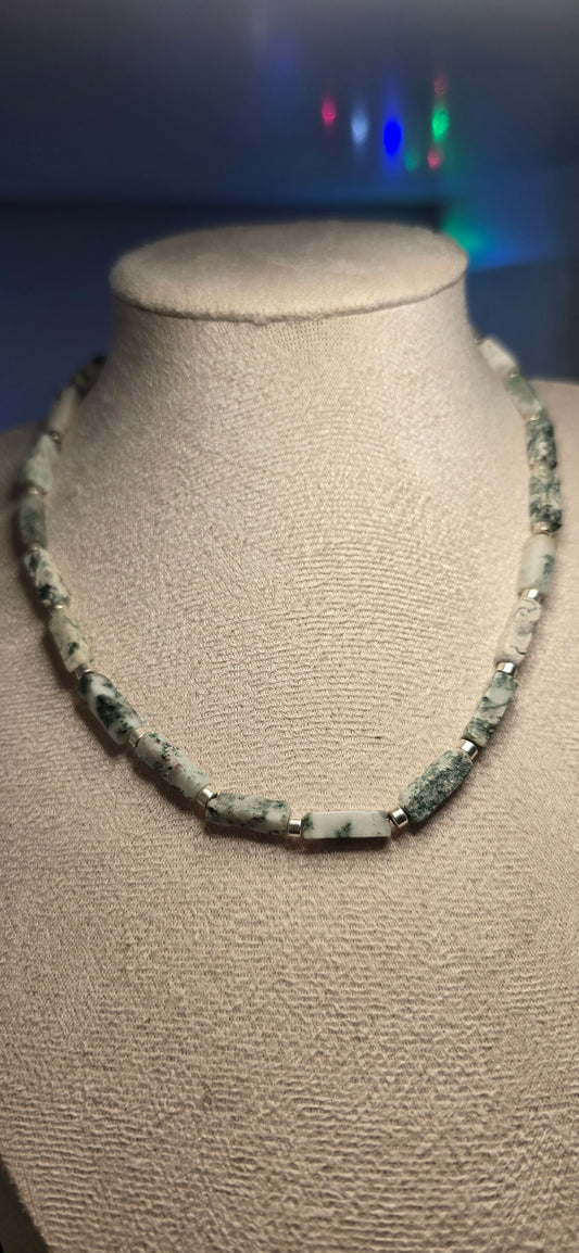 Architettura di Bosco: Collana in Agata Muschiata Rettangolare