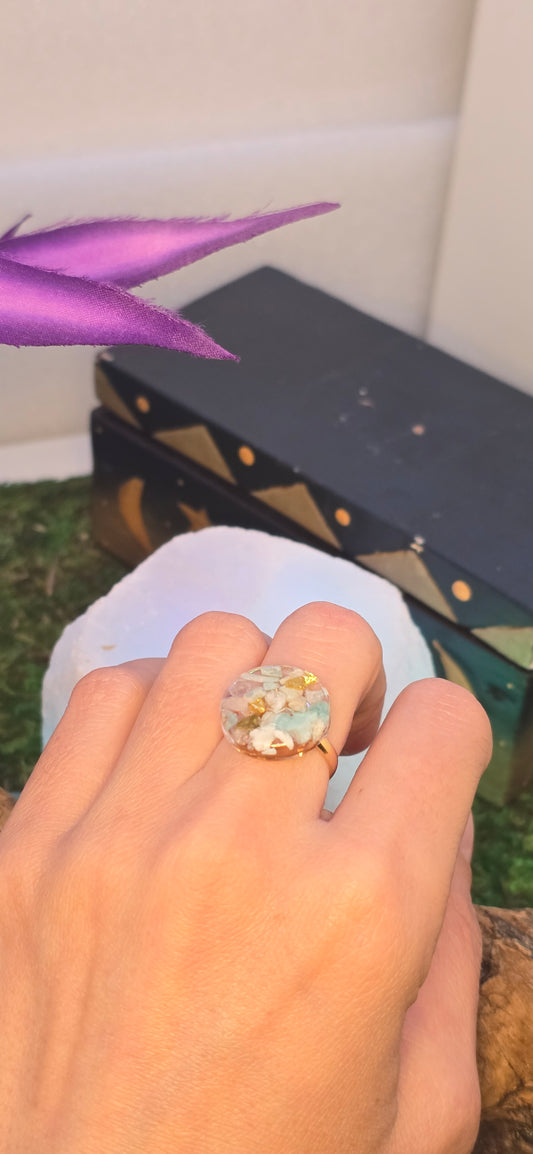 Anello "Equilibrio Primordiale": Resina e Amazzonite
